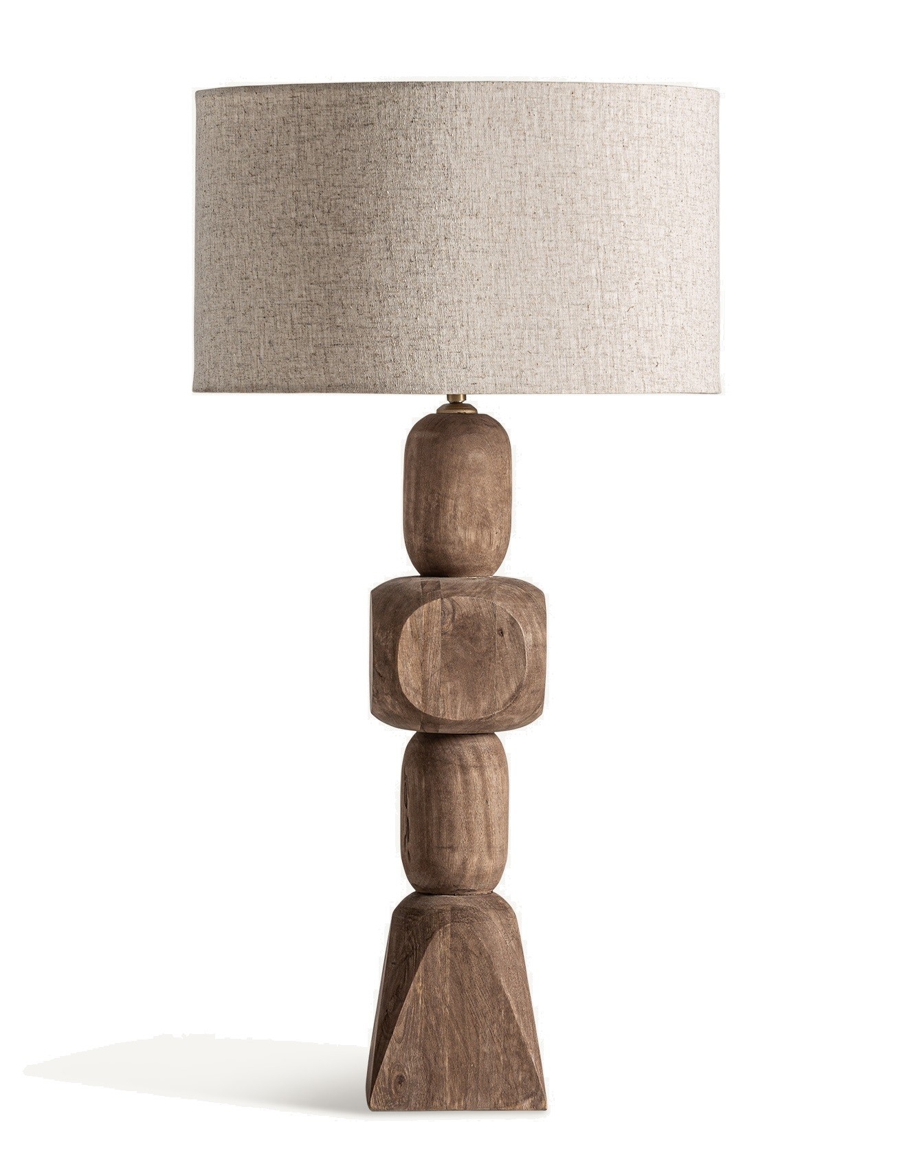 Estila Dizajnová okrúhla stolná lampa Willow s bielym bavlneným tienidlom a valcovou masívnou hnedou ozdobnou nohou 48 cm |